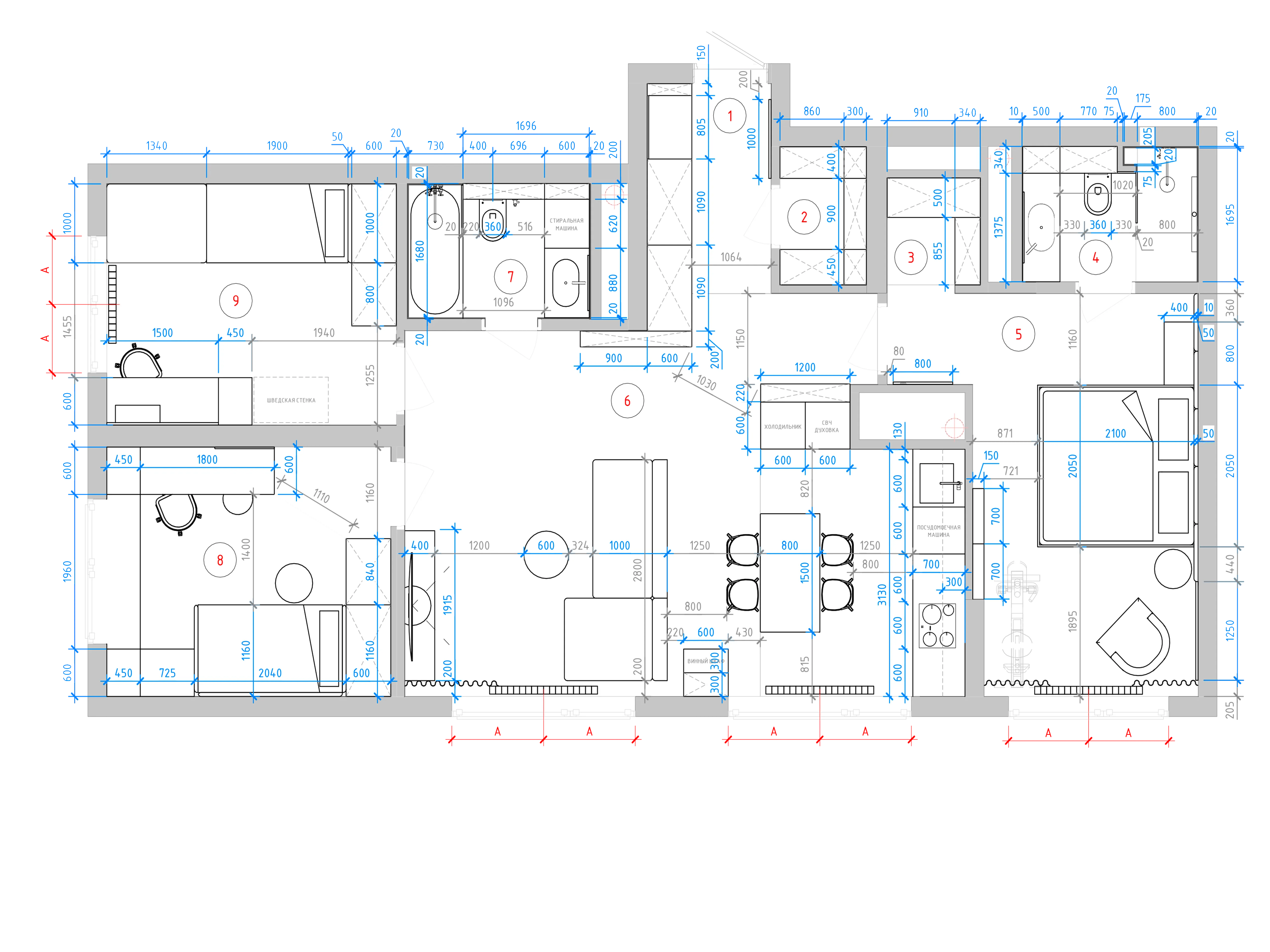 В детской комнате Паши мы объединили все зоны: игровую, спортивную, учебную и спальную. Использовали сложный синий цвет и красивые обои, изготовленные на заказ. Как и в других комнатах квартиры, покрасили оконную раму и заменили радиатор на графитовый. Теперь детская выглядит стильно и уютно.
